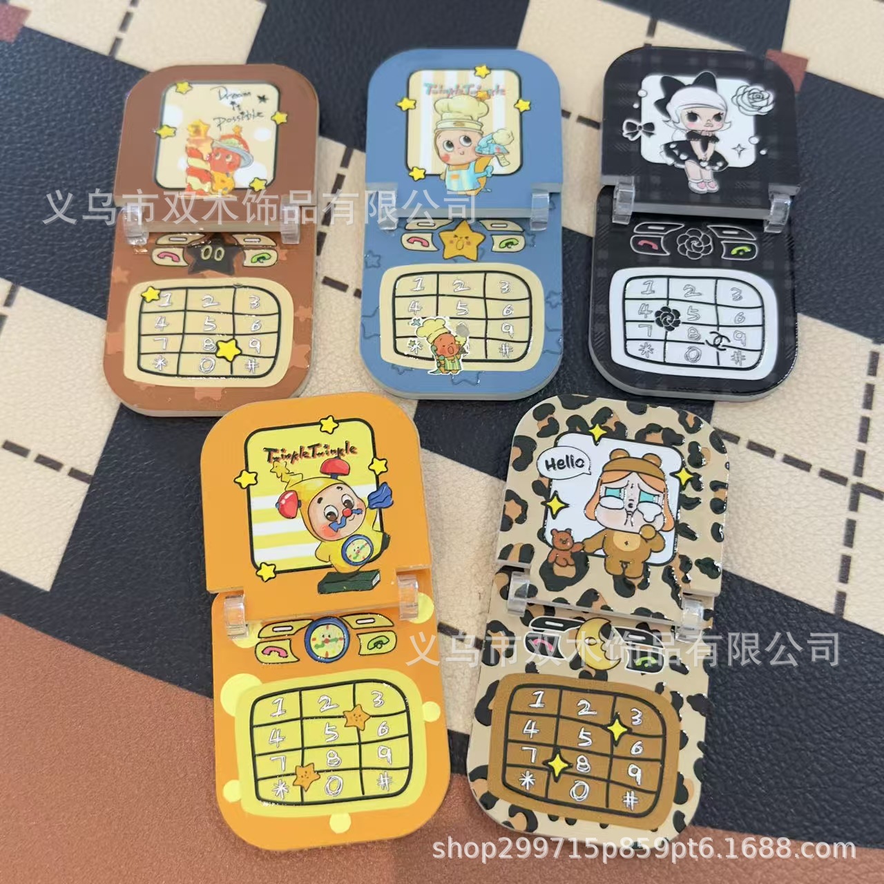 浮雕星星人哭娃拉布布翻盖手机板材吊珠 diy手机链包挂车挂配件