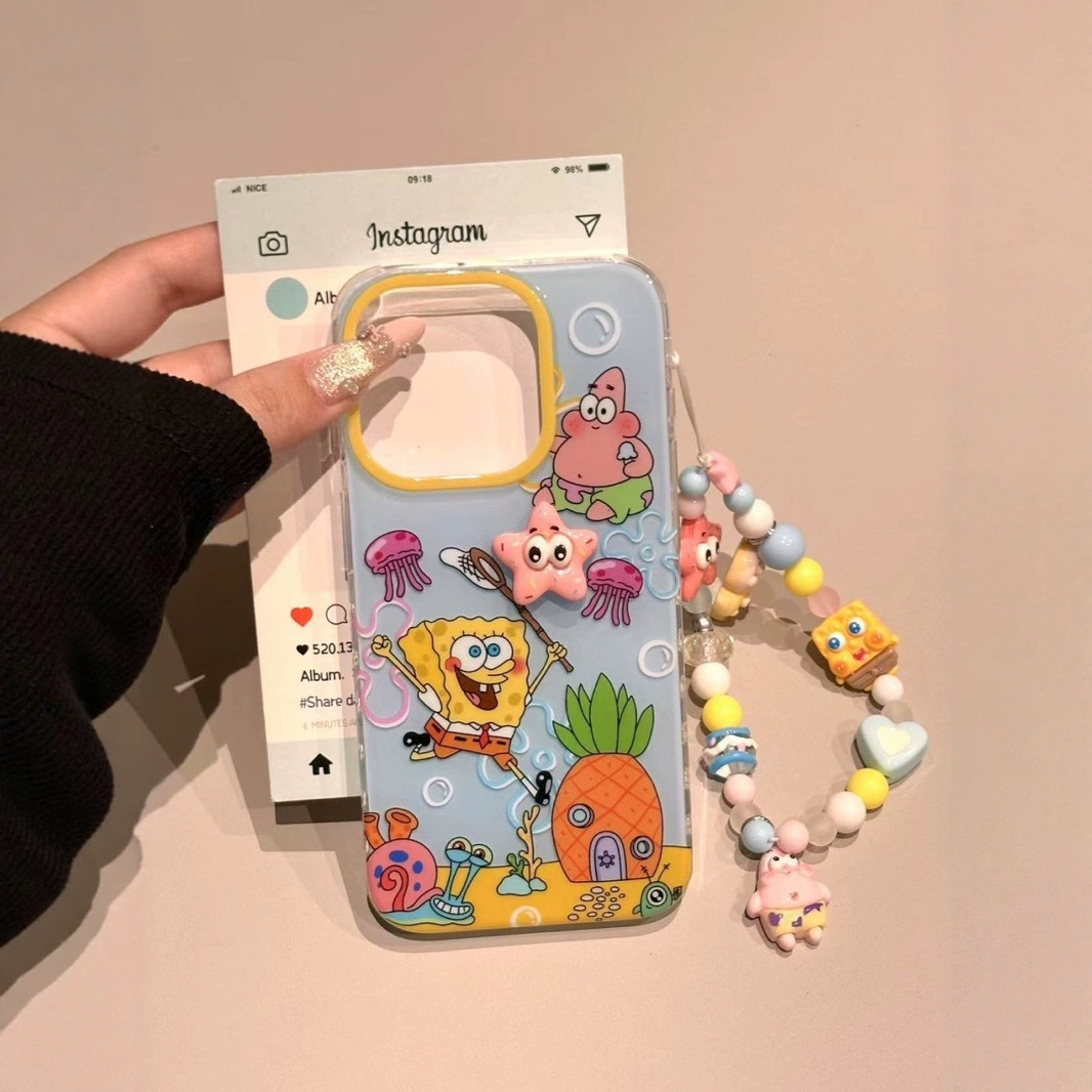 海绵宝宝派大星适用iPhone16promax苹果15手机壳14新款13女16链条
