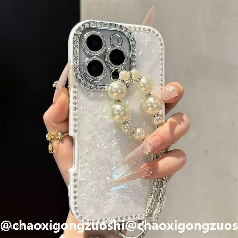 Casing ponsel mutiara untuk Apple 15, cincin Promax rantai portabel iPhone14 ringan mewah gaya ins
