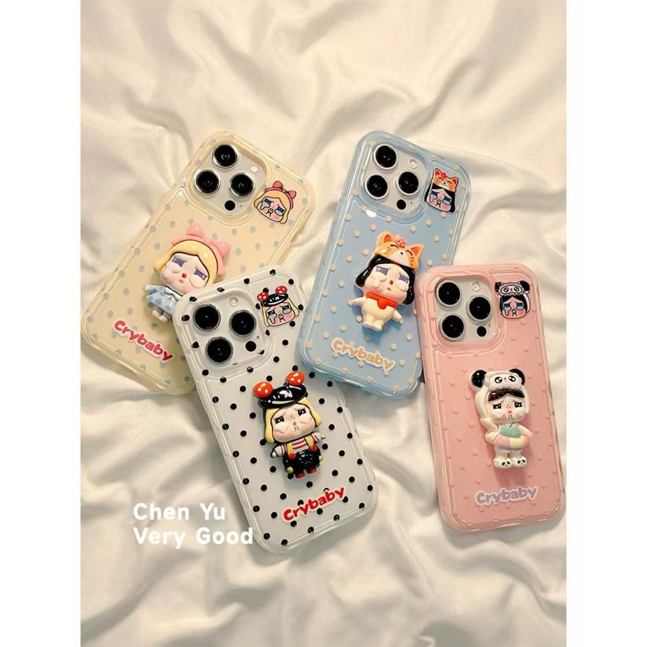 立体卡通哭娃波点适用iPhone16promax苹果15手机壳14新款13网红12