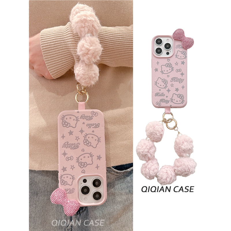 立体粉色闪钻凯蒂猫适用iPhone16promax苹果15手机壳14新款13女11