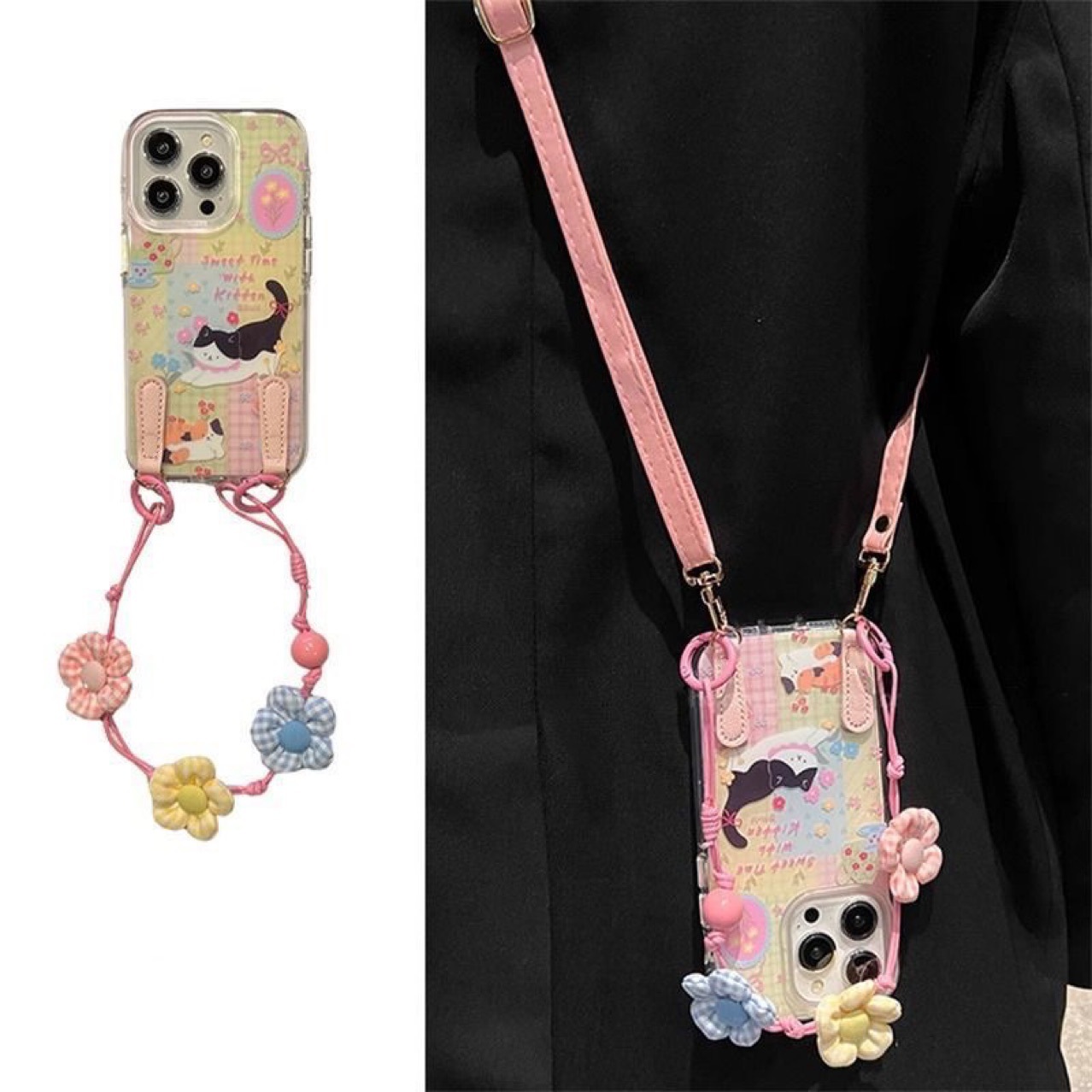 可爱格纹碎花小猫适用苹果16promax手机壳iPhone15新款13/14/12/x