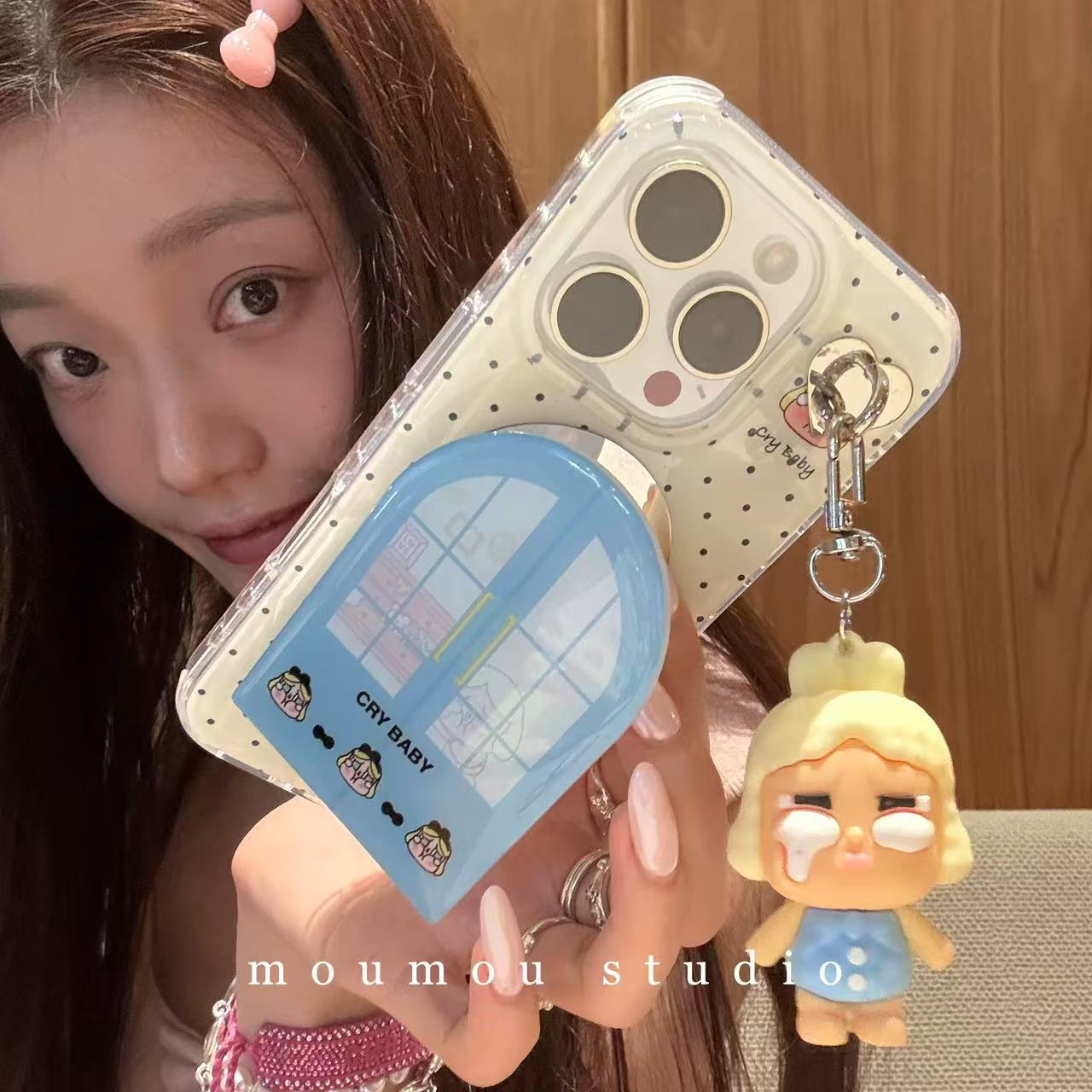可爱卡通波点哭娃镜面挂件适用iPhone16promax苹果15手机壳14新款