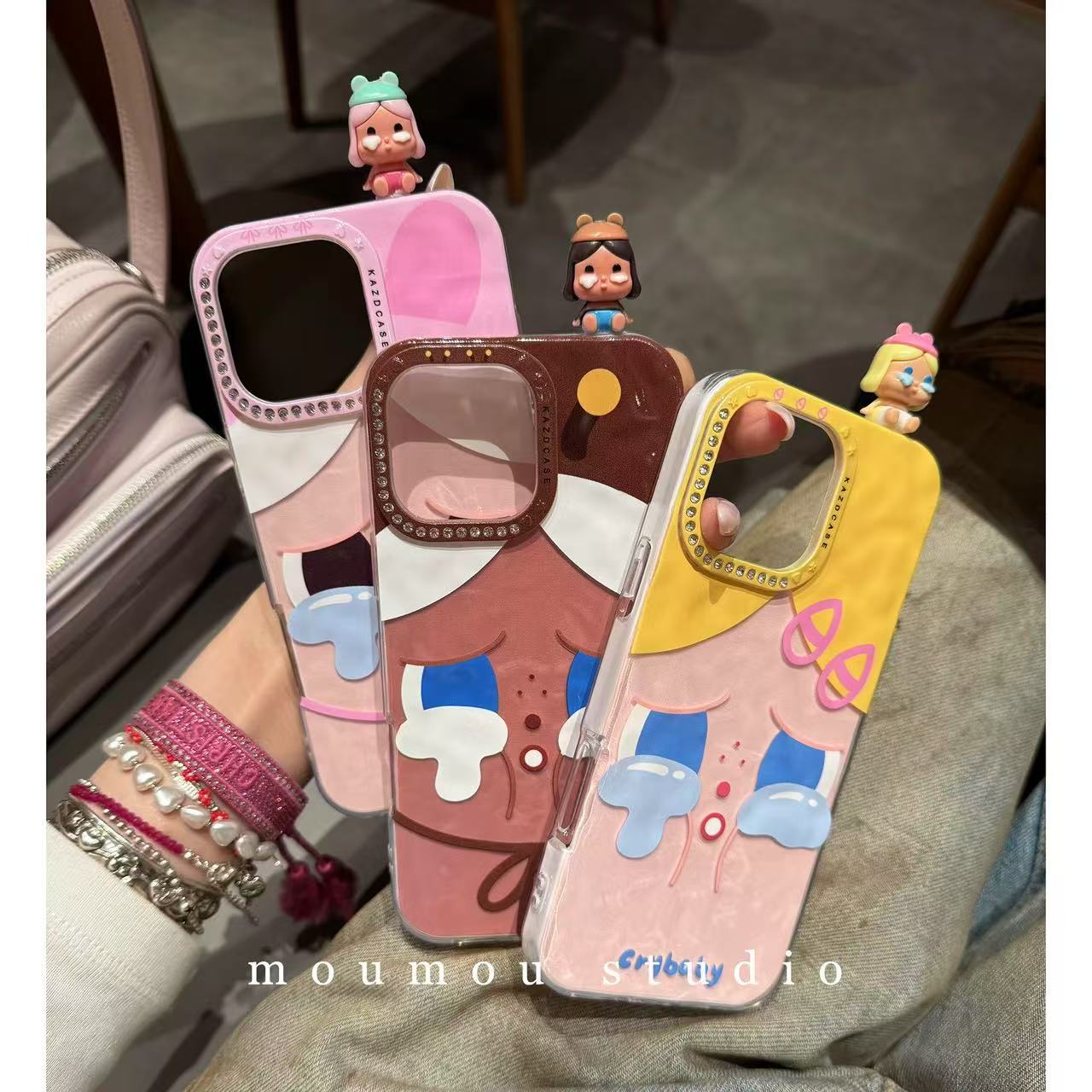 Bingkai Lensa Berlian Berkilau Lucu Menangis Bayi Casing Ponsel untuk iPhone 16Promax Apple 15 14 Tiga Dimensi 13