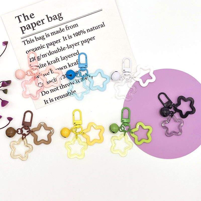 Gantungan kunci liontin bintang lima-sudut, gantungan kunci Aksesori bel Cat lucu akrilik berongga warna-warni