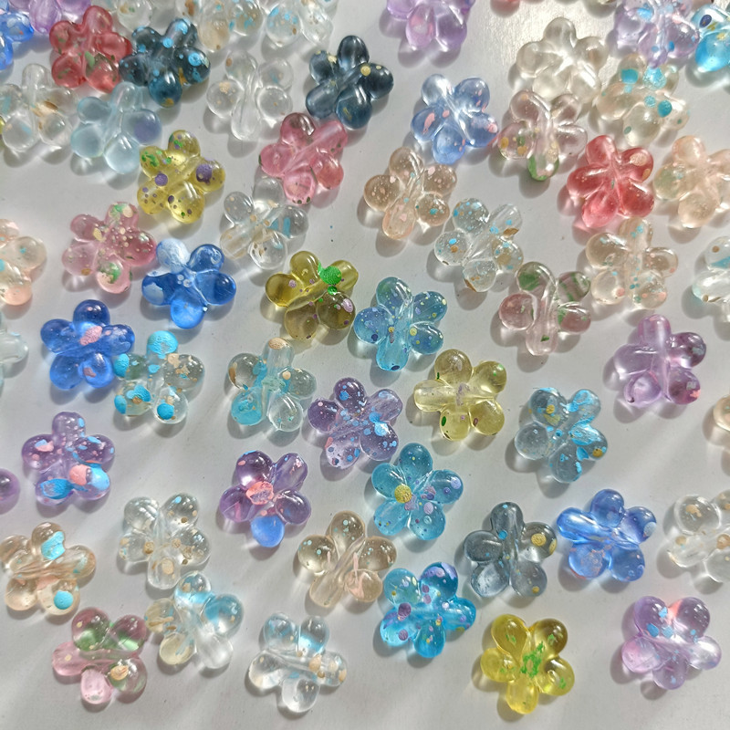 新款透明彩色油画梅花双色渐变小花DIY饰品配件手机链包挂件串珠