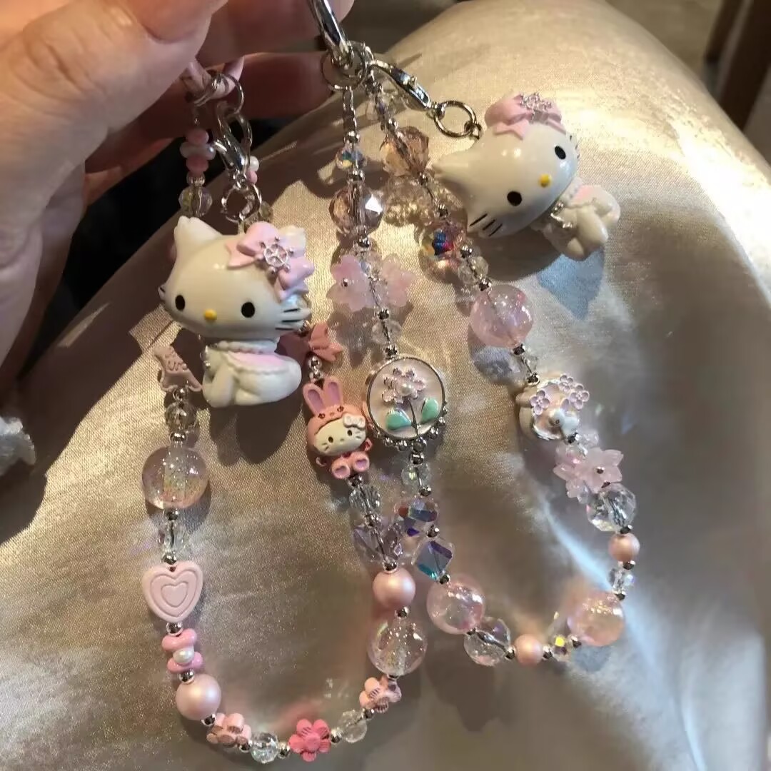 Rantai Gantungan Kunci Ponsel KTKucing Manik-Manik Buatan Tangan Kartun Ins Rantai DIY Kamera Ccd Tas Ransel Aksesori Gantung Anti Hilang