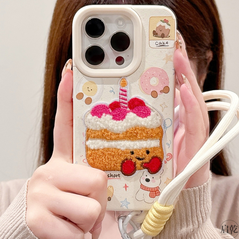 Casing Ponsel untuk Apple 14/13Promax Tali Gantung 12 untuk Kue Bordir Kartun Kulit
