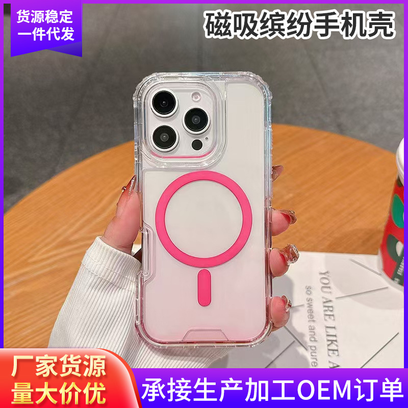 跨境适用苹果iPhone17二代磁吸缤纷渐变色iP17 Pro max彩色多色14
