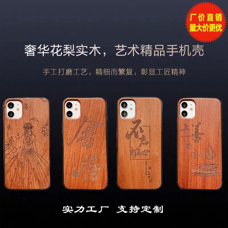 Berlaku untuk iPhone 15 cangkang ponsel kayu baru Apple 13 cangkang ponsel tahan jatuh kayu solid ip12 Rosewood