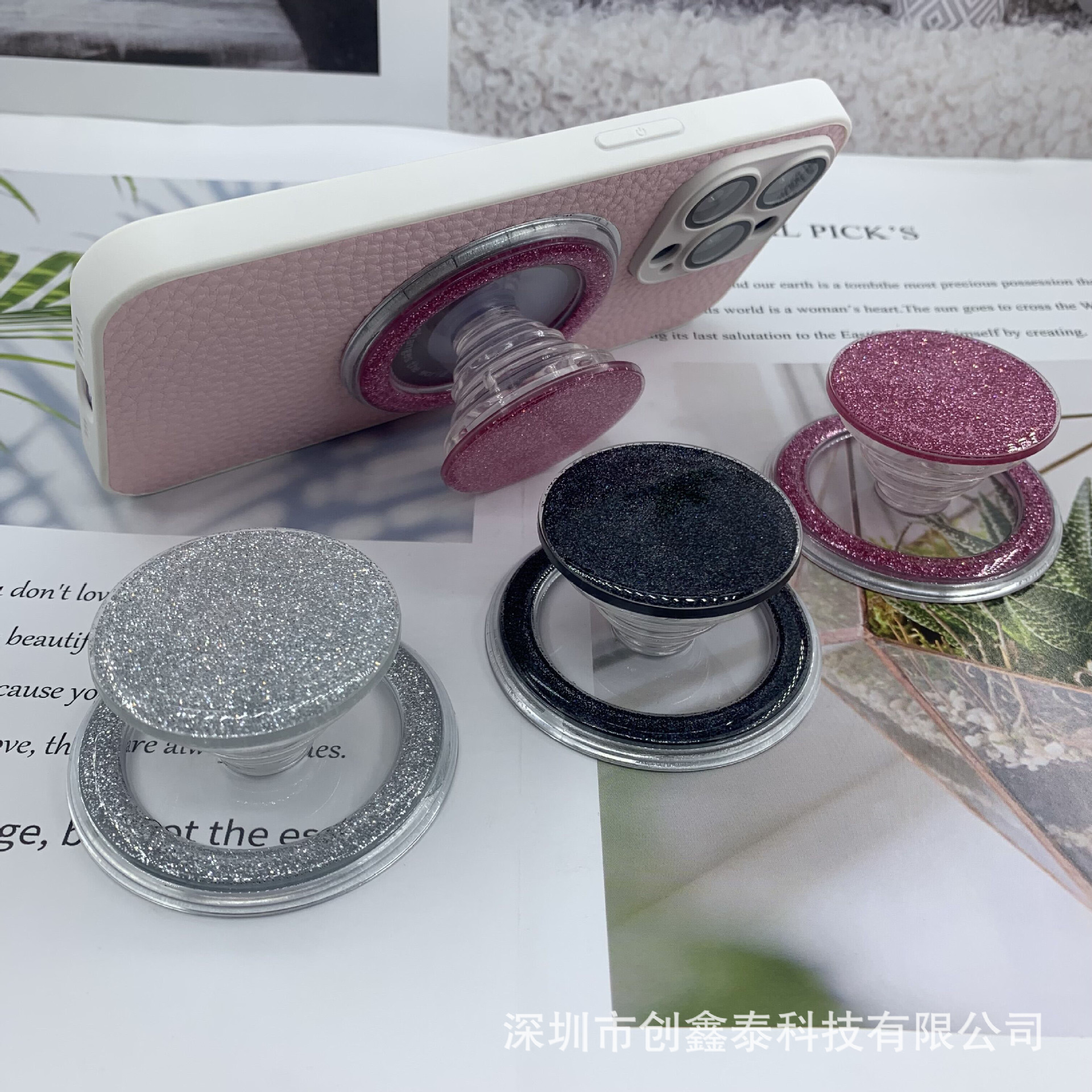 Braket ponsel penyedot magnet, braket ponsel penyedot magnetis glitter transparan, alas magsafe, epoksi, desktop malas, braket ponsel