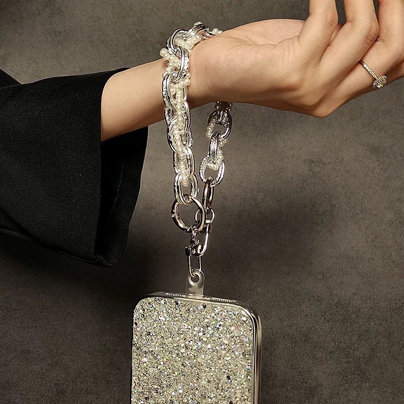 Lampu rantai ponsel berlian imitasi gaya mewah, lampu rantai mutiara cincin berlian kelas tinggi ornamen tali penyandang ponsel Semua cocok