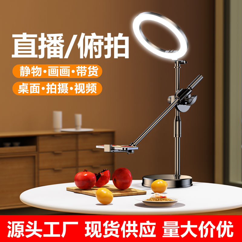 Statif ponsel untuk pengambilan gambar dari atas, lampu LED penambah kecantikan untuk live streaming dan desktop, untuk pengambilan gambar makanan, perekaman video, dan fotografi tablet.