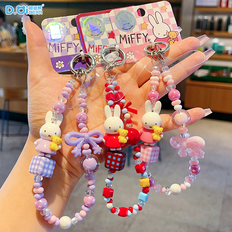 Rantai Ponsel Lucu Aksesori Gantungan Kunci Tas Sekolah Manik Manik-manik Kelinci Mifi Asli Model Baru