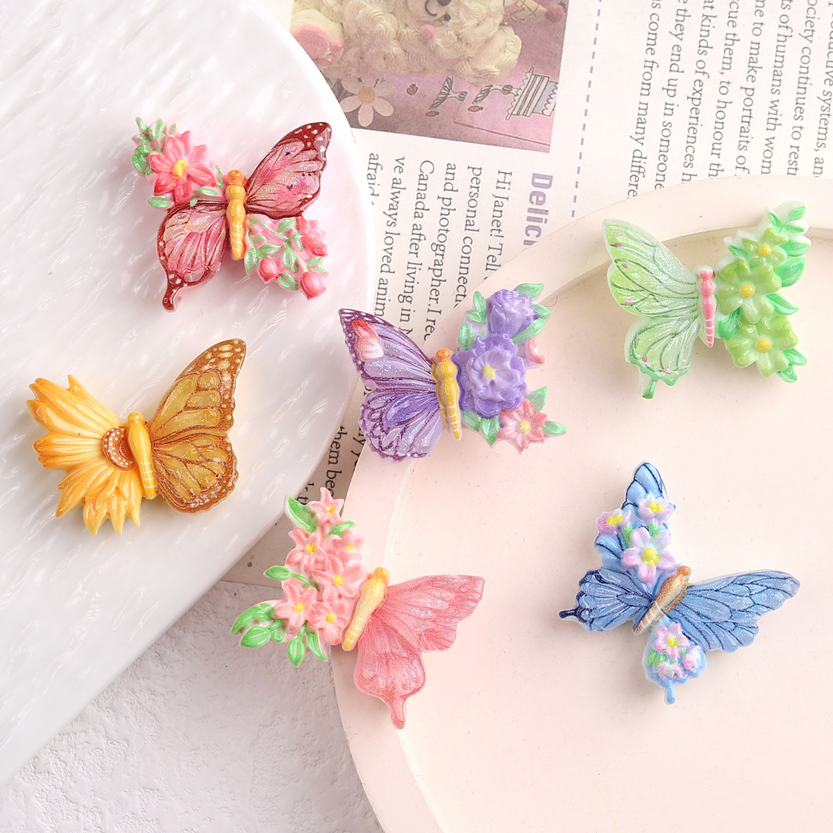 Aksesoris Resin DIY Kartun Jepitan Rambut Buatan Tangan Lem Krim Kupu-kupu Bunga Aksesoris Gesper Sepatu Ponsel