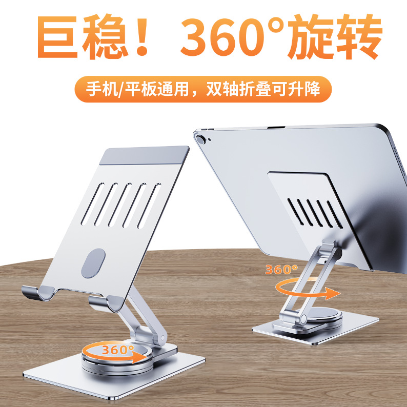 Rak tablet lipat multifungsi, braket ponsel aluminium paduan, logam lipat berputar 360 derajat malas mengangkat portabel