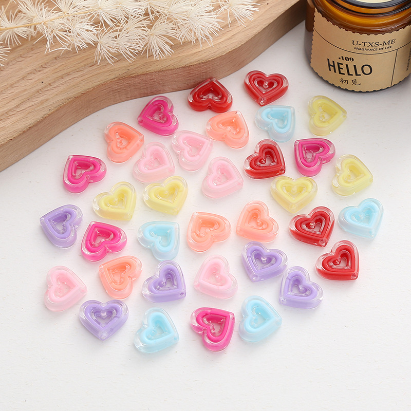 Manik-Manik Berongga Hati Lubang Lurus Model Baru Manik-Manik Manik Buatan Tangan DIY Manik-manik Gantung Ponsel Model Pasangan Aksesori Grosir