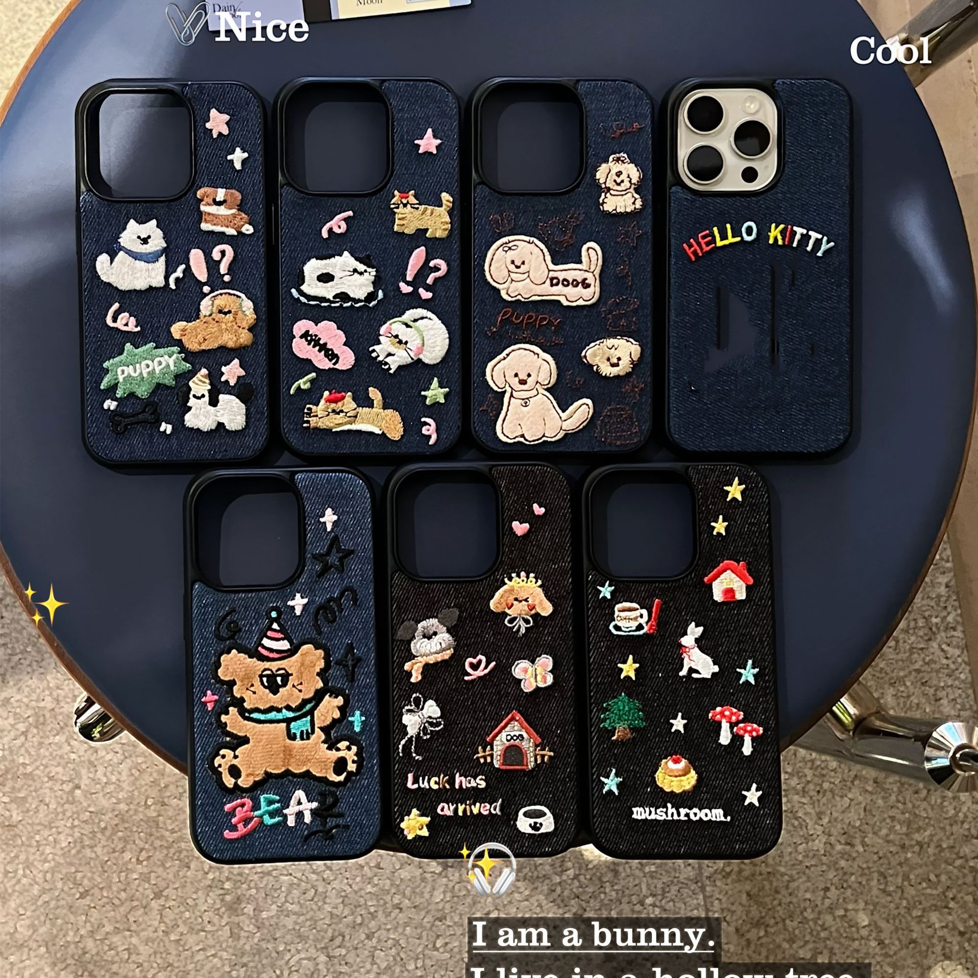 Casing ponsel bordir kucing kartun, untuk iPhone 15pro Max Apple 14 11 lucu 12 musim gugur dan musim dingin gaya Korea 13