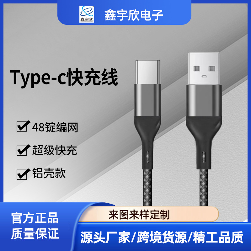 100w超级快充数据线车载usb编织充电线适用苹果pd华为手机充电线