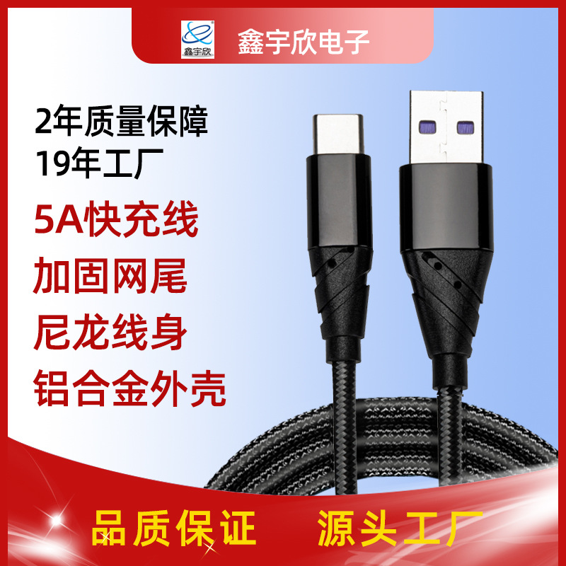 Kabel pengisi daya USB tipe-c Android, kabel pengisian daya ponsel, kabel USB grosir, kabel data ponsel, jalinan nilon aluminium, kabel pengisian cepat, 5A, pabrik
