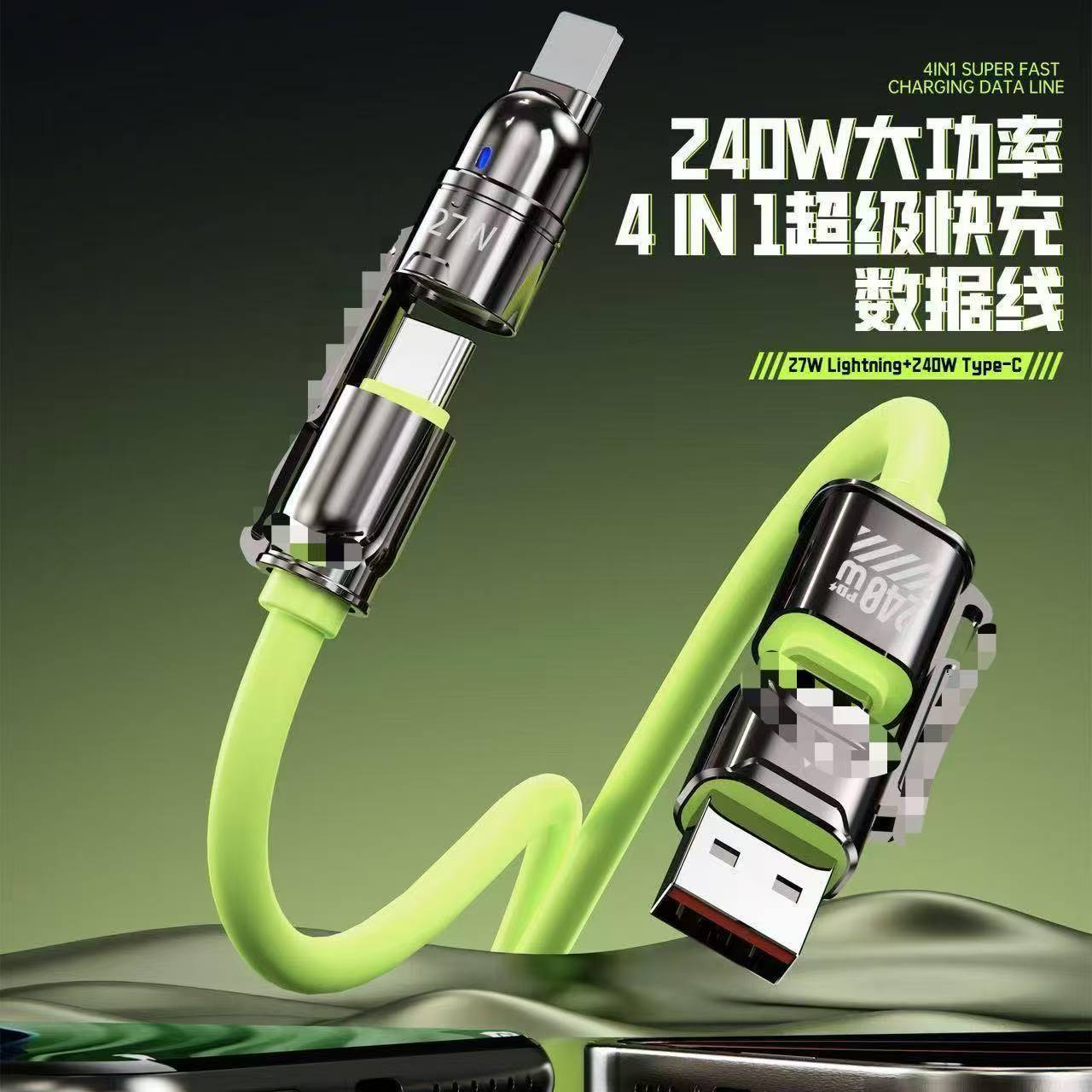 240W Kabel Data 4-in-1 Typec Ganda untuk Apple 16 Huawei Ponsel PD Pengisian Cepat Dua Tarik Kabel 2 H