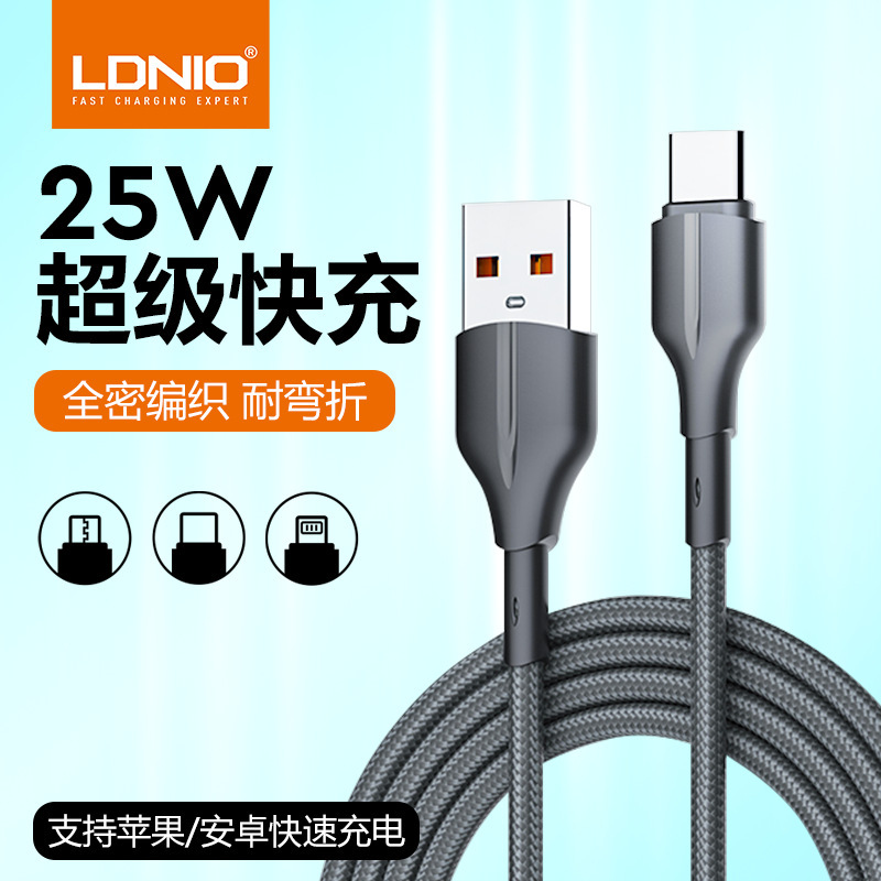 LDNIO kabel pengisi daya ponsel, untuk Apple Huawei Xiaomi kabel pengisian daya 25W pengisian cepat 1 m 2 M kabel data lideno