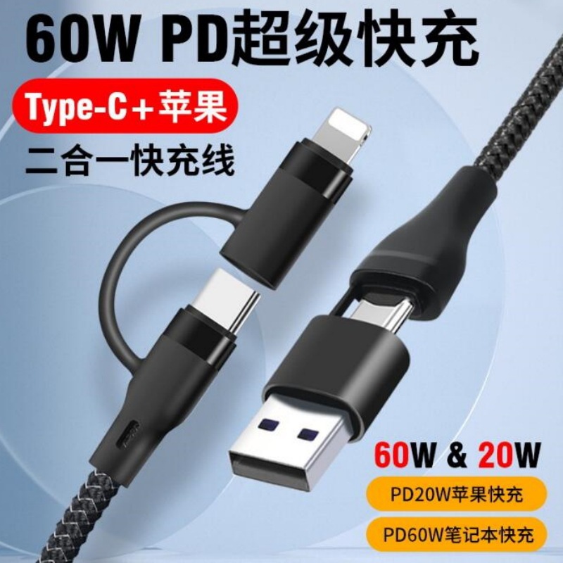 Kabel data multifungsi PD yang berlaku, dua tarikan cepat Tipe c ke apple c-to-c empat dalam satu kabel pengisian 20W