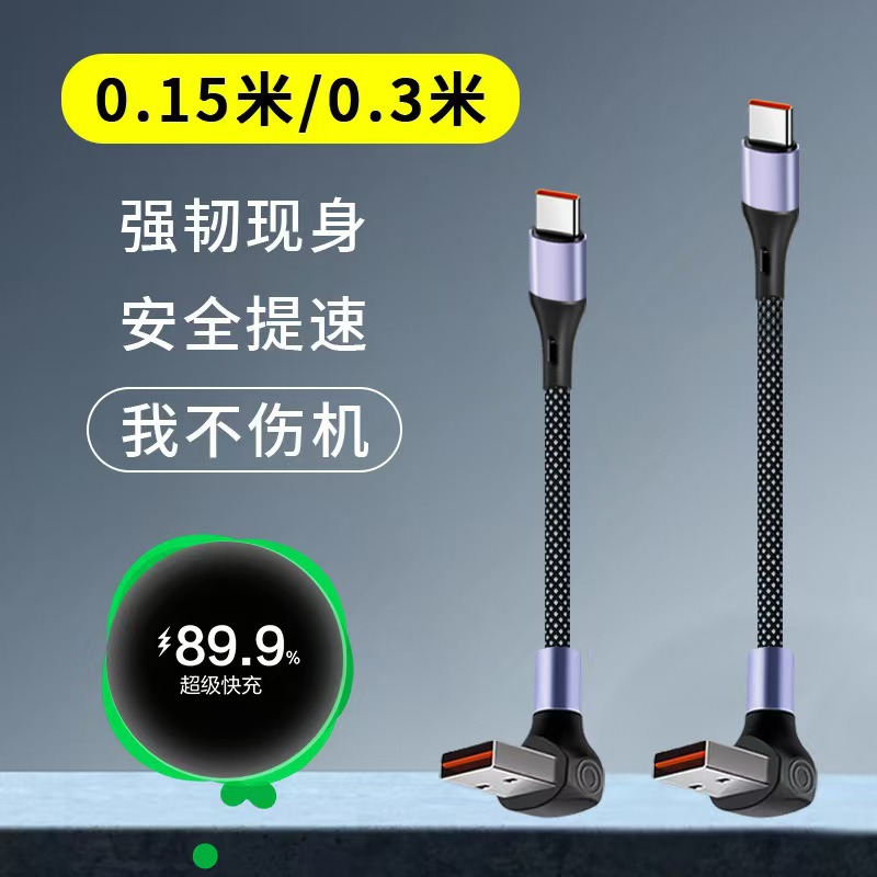 Kabel Data Power-Charge 66W Kabel Pengisian Ulang Ponsel Typec Ganda PD Super Cepat Model Pendek 0.15/0.3 M
