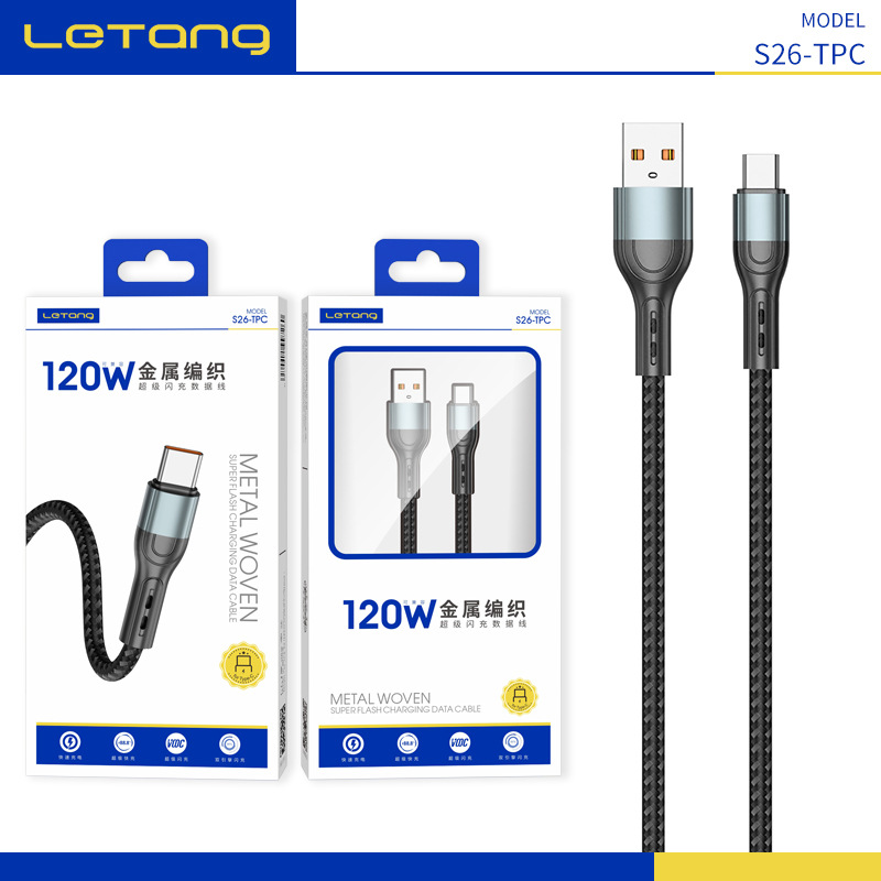 Le sugar kabel data pengisian daya cepat, kabel pengisian daya logam kepang nilon untuk Apple Android Huawei Xiaomi 120W