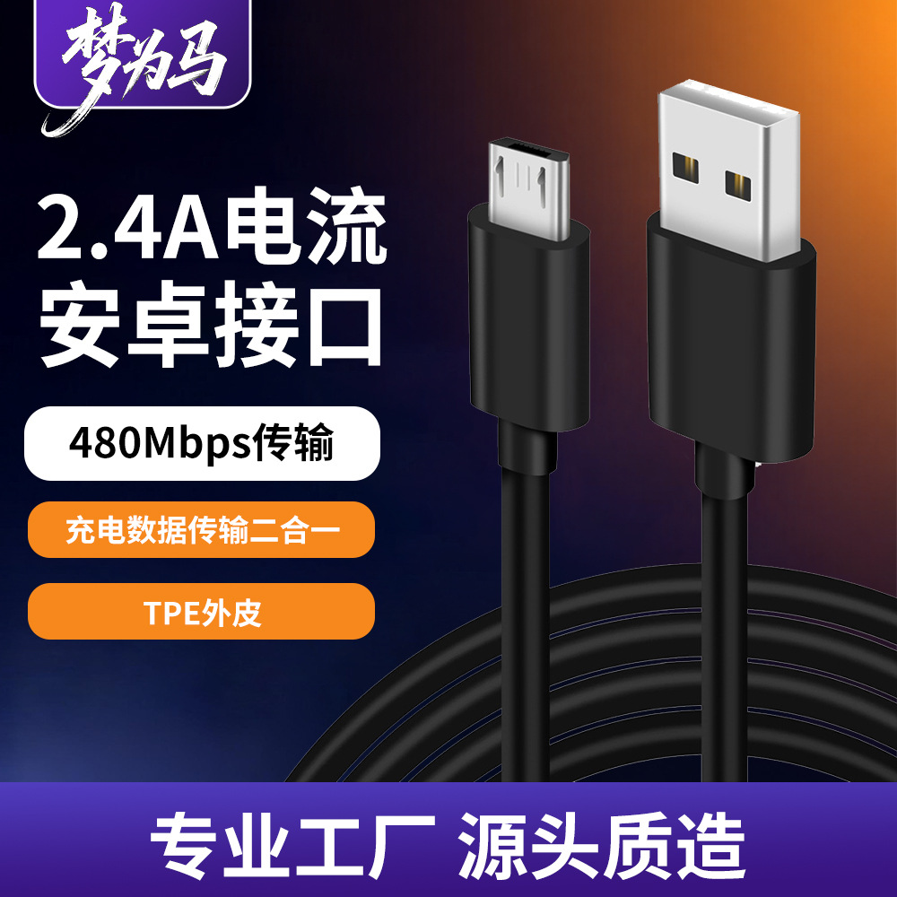 Kabel data usb mikro tembaga murni, kabel data usb mikro, kabel pengisian daya mikrofon V8, kabel data ponsel universal Android, harta karun 2M