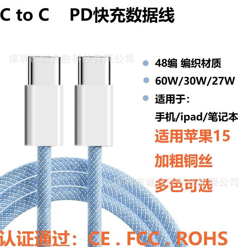 Untuk Apple 15iPhone16 Seri 60W Kabel Data Charge Cepat PD20W Kabel Charge Tenun Tipe Ganda