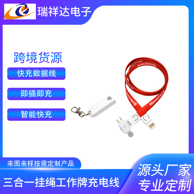 Kabel pengisi daya kartu kerja tali pengisi daya ponsel tali penyandang tiga dalam satu LOGO kabel data ponsel grosir
