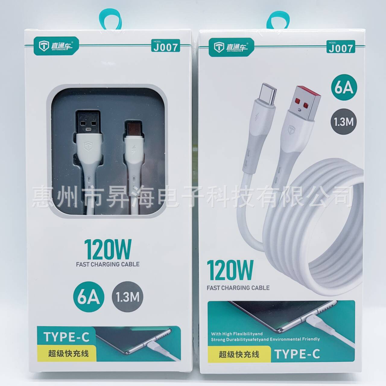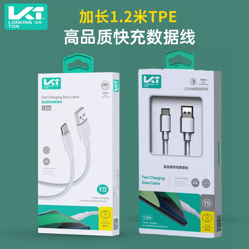 Longqi 6A kabel data pengisian daya super cepat, kabel pengisian daya ponsel super cepat untuk Apple Android Xiaomi Huawei typeec120w