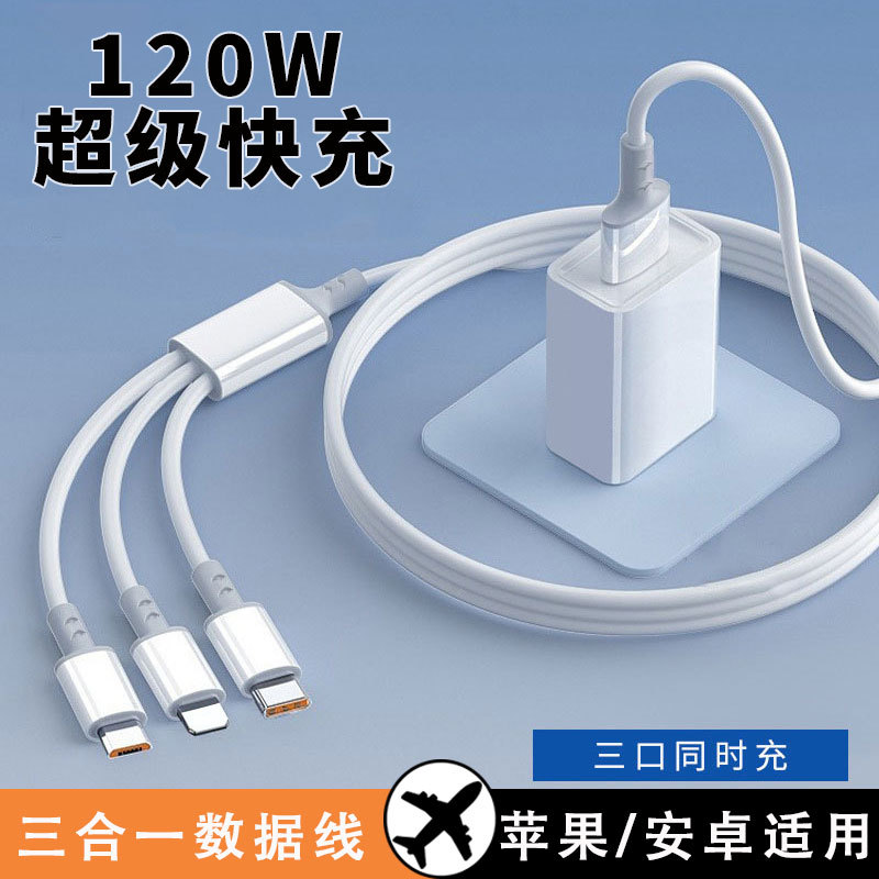 Kabel pengisian daya ponsel 120W, kabel data tiga dalam satu paduan seng cocok untuk Huawei Android Apple satu hingga tiga kabel pengisian daya Cepat Ponsel