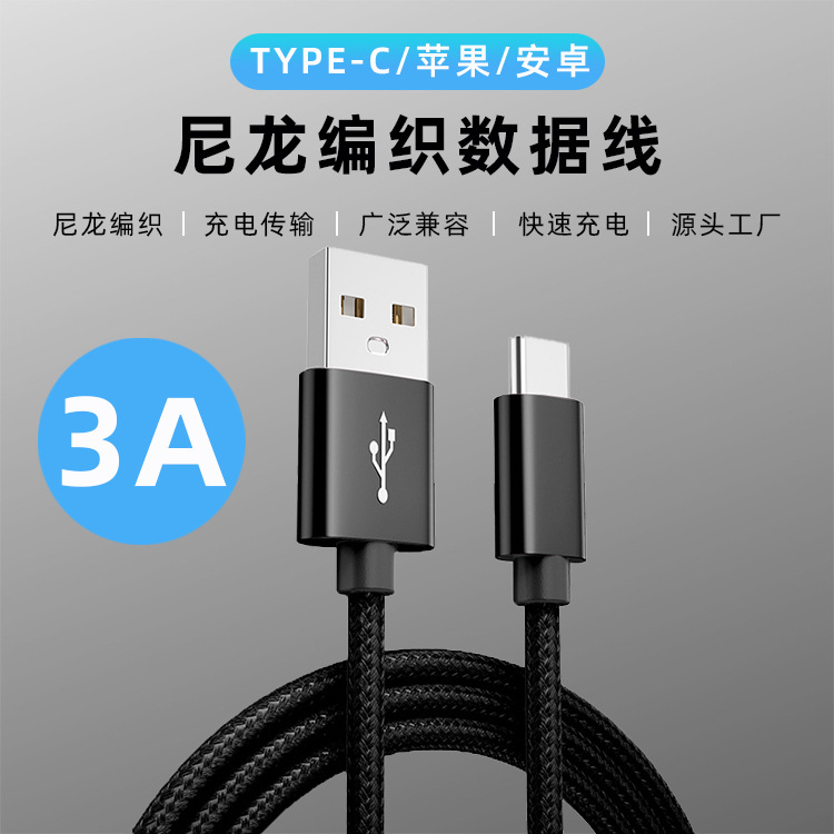 Kabel Pengisian Cepat USB Kabel Data Tipe C Kabel Pengisian Cepat Tenun Kabel Pengisian Cepat untuk Kabel Ponsel Android Huawei