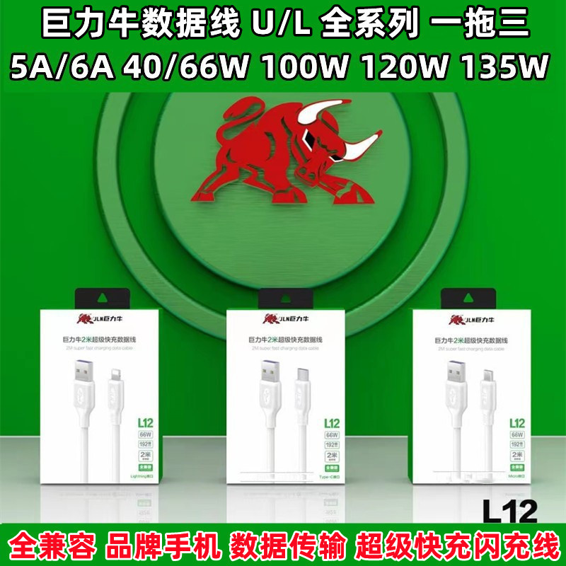 JNL Kabel Data Sapi Super Cepat 200W Kabel Data Ponsel Satu Trailer Tiga Kompatibel Penuh dengan Pengisian Flash 66W