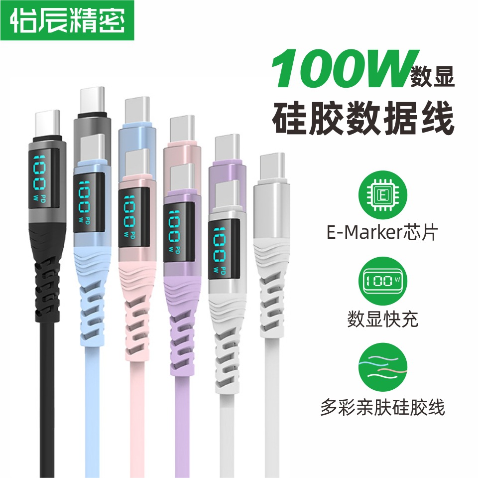 Double magic kabel data pengisian daya cepat, tampilan digital cerdas 100W cocok untuk Apple 15PD27W notebook Huawei tipe-c.