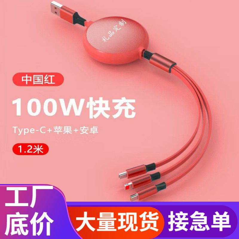 Kabel pengisian daya cepat, kabel pengisian daya Cepat tiga dalam satu teleskopik rangka aluminium 100W untuk Apple Android tipe-c tiga-dalam-satu