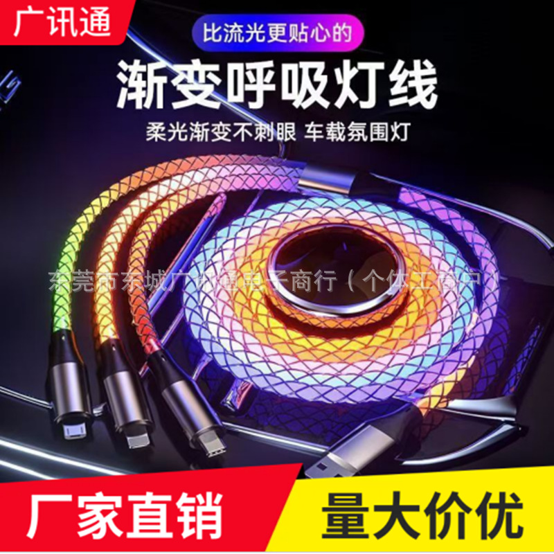 Kabel Data Bercahaya Tujuh Warna Isi Ulang Super Cepat RGB Tipe Satu Pd Kabel Isi Ulang Tiga 6A Warna Simfoni Mobil 3-in-1