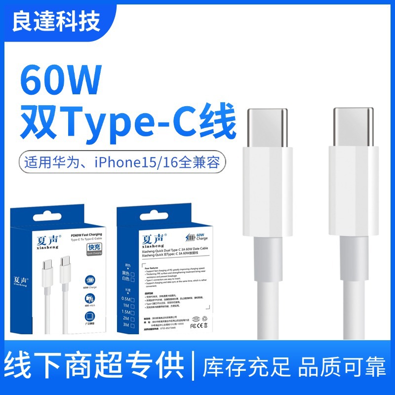 Kabel data typec kepala ganda 60W berlaku untuk Huawei Apple kabel data PD60W kabel pengisian daya cepat kabel pengisian daya c-ke-c