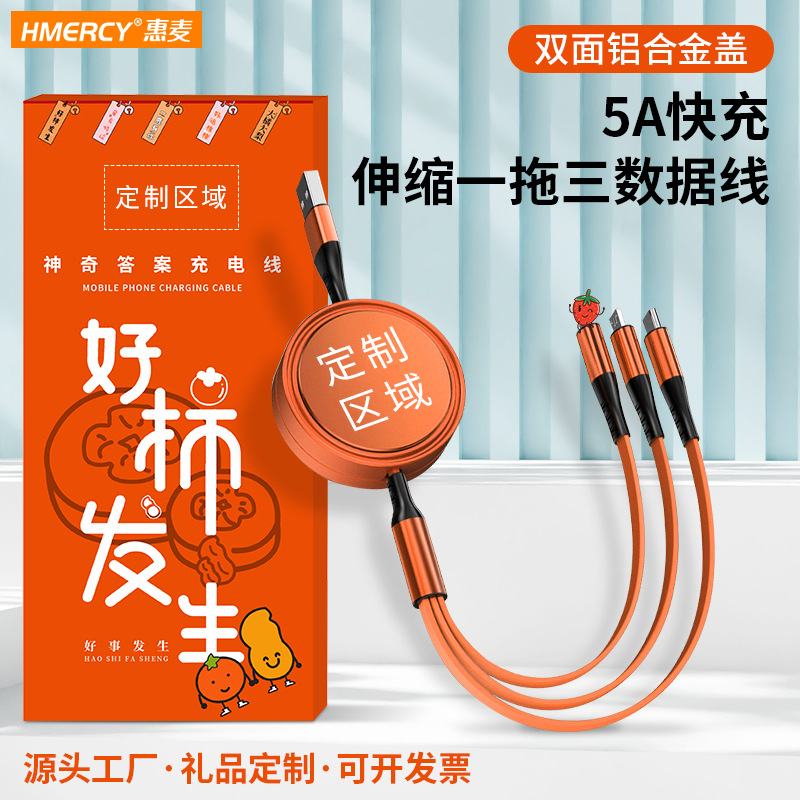 Kabel data pengisian daya cepat Apple, kabel pengisian daya cepat, Model c, Apple Android, tiga dalam satu yang dapat ditarik, 5A, hadiah kabel data