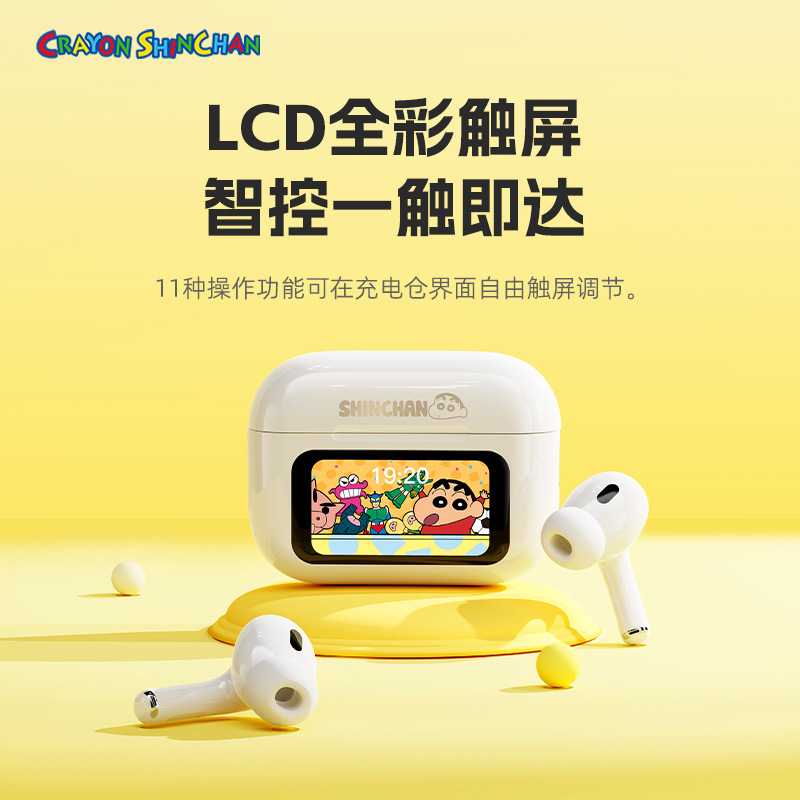 Crayon Doraemon S1 Earphone Bluetooth Nirkabel Earphone Olahraga Earphone Layar Warna High-end Layar Sentuh Cerdas