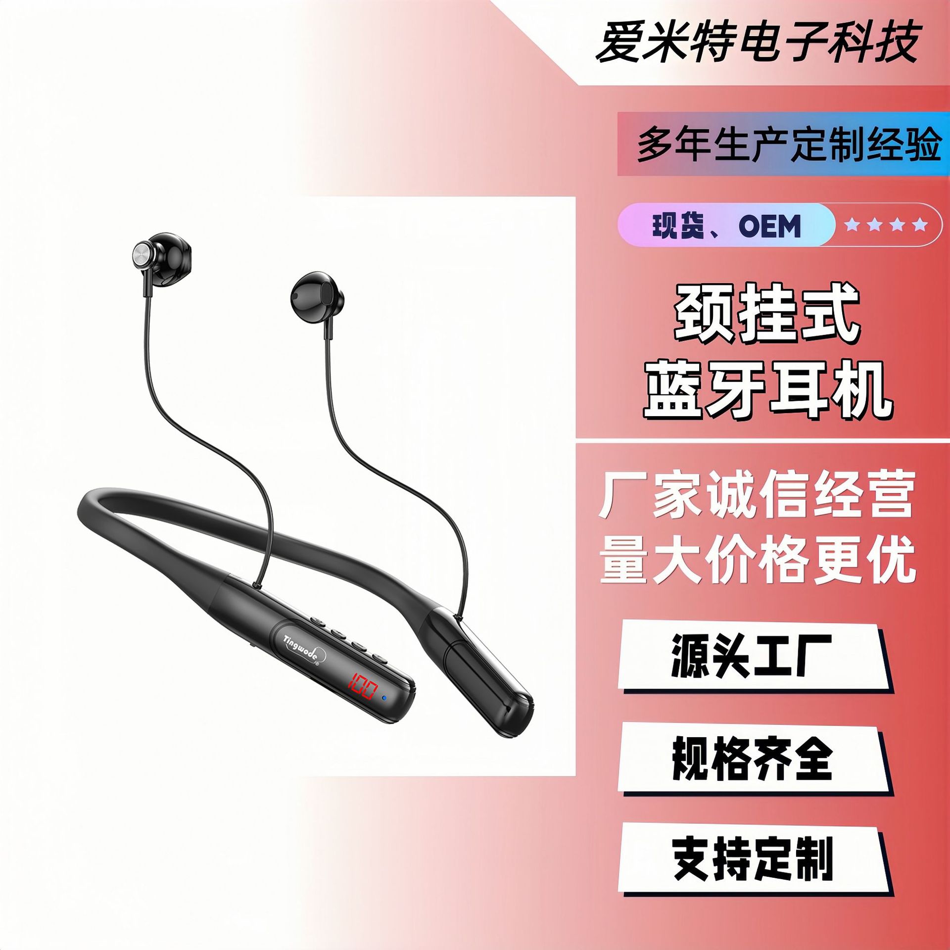抖音FD-1耳返挂脖式无线蓝牙耳机入耳式运动超长续航直播k歌新款