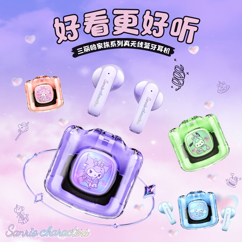 Sanrio headset Bluetooth nirkabel TWS asli, headset Bluetooth Anak perempuan imut kartun kekuatan besar tahan lama