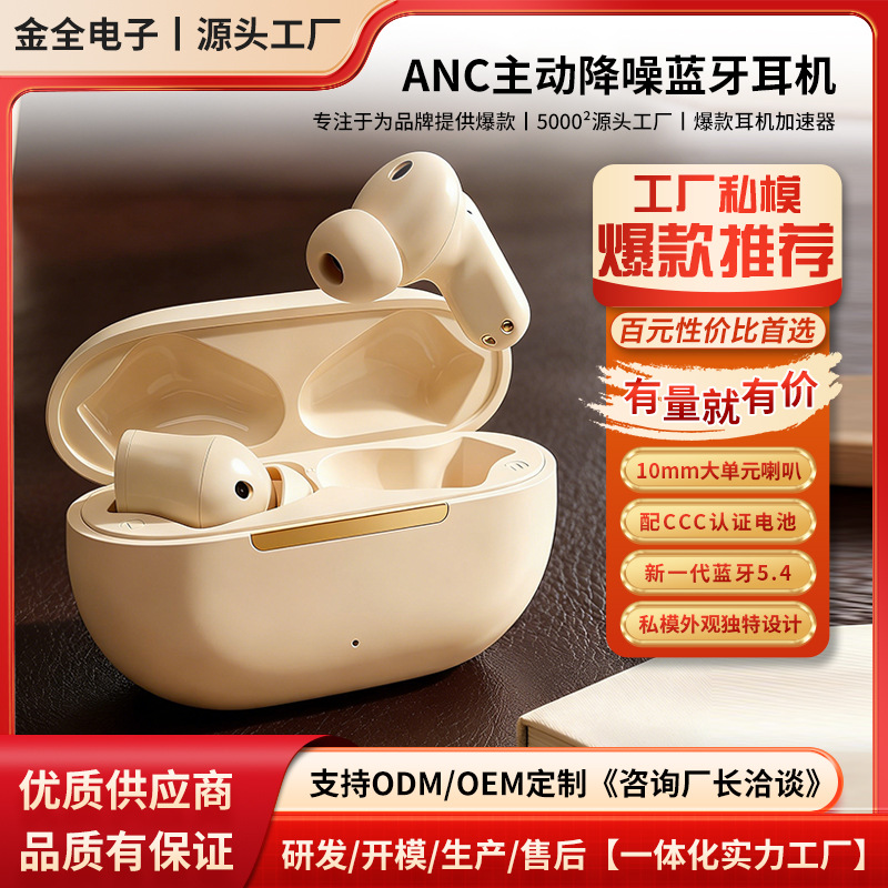 Headset Bluetooth nirkabel lintas batas, model pribadi ANC + ENC mikrofon ganda panggilan HD pengurang kebisingan aktif TWS 5.3