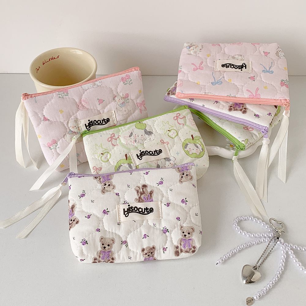 Tas Penyimpanan Berlapis Beruang Kartun Instagram Tas Penyimpanan Earphone Bluetooth Mini Amplop Lucu Dompet Uang Receh Portabel