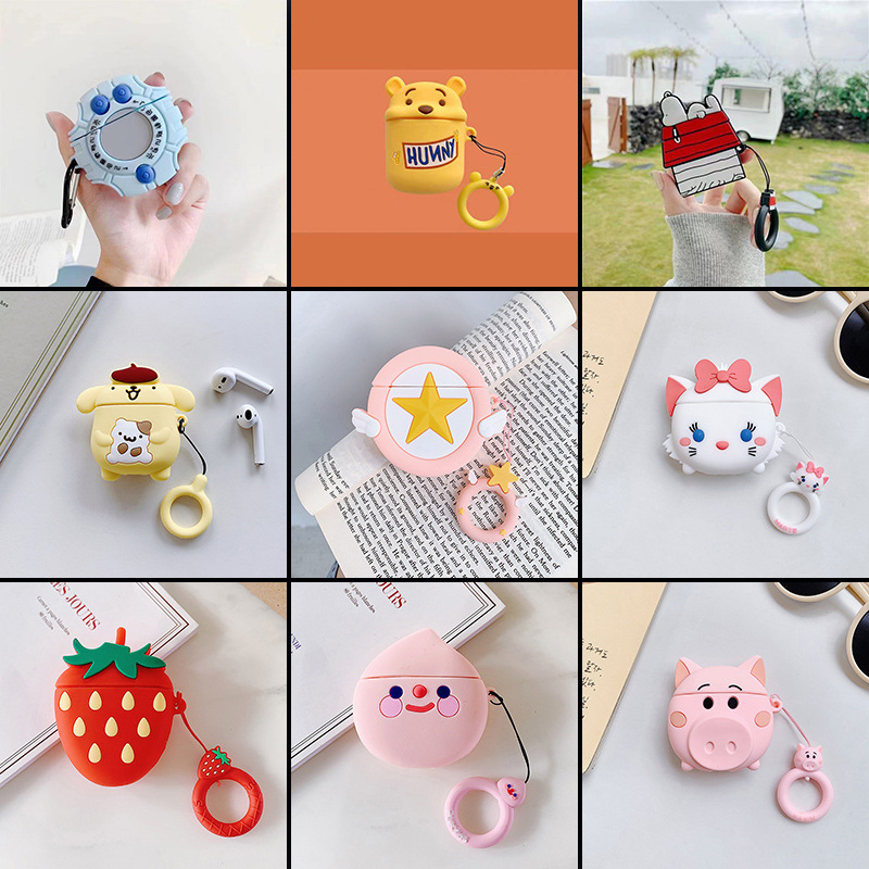 Sarung earphone kartun AirPods1 2/pro/3, pelindung lunak silikon kartun lucu tiga dimensi