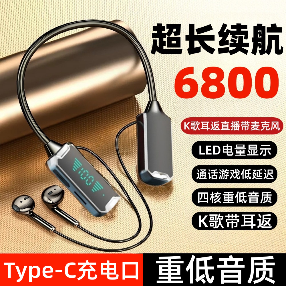 Headset Bluetooth Nirkabel Model Gantung Leher Model Baru Super Panjang dengan Lagu K dengan Telinga Kembali Dapat Sisipan Kartu Pengurangan Kebisingan Universal Olahraga