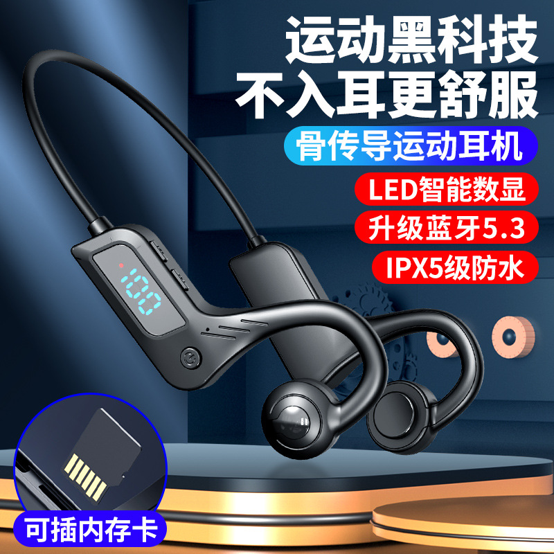 X7 headset Bluetooth nirkabel, headset Bluetooth olahraga tampilan digital konduksi tulang telinga tidak masuk kartu stereo tahan air