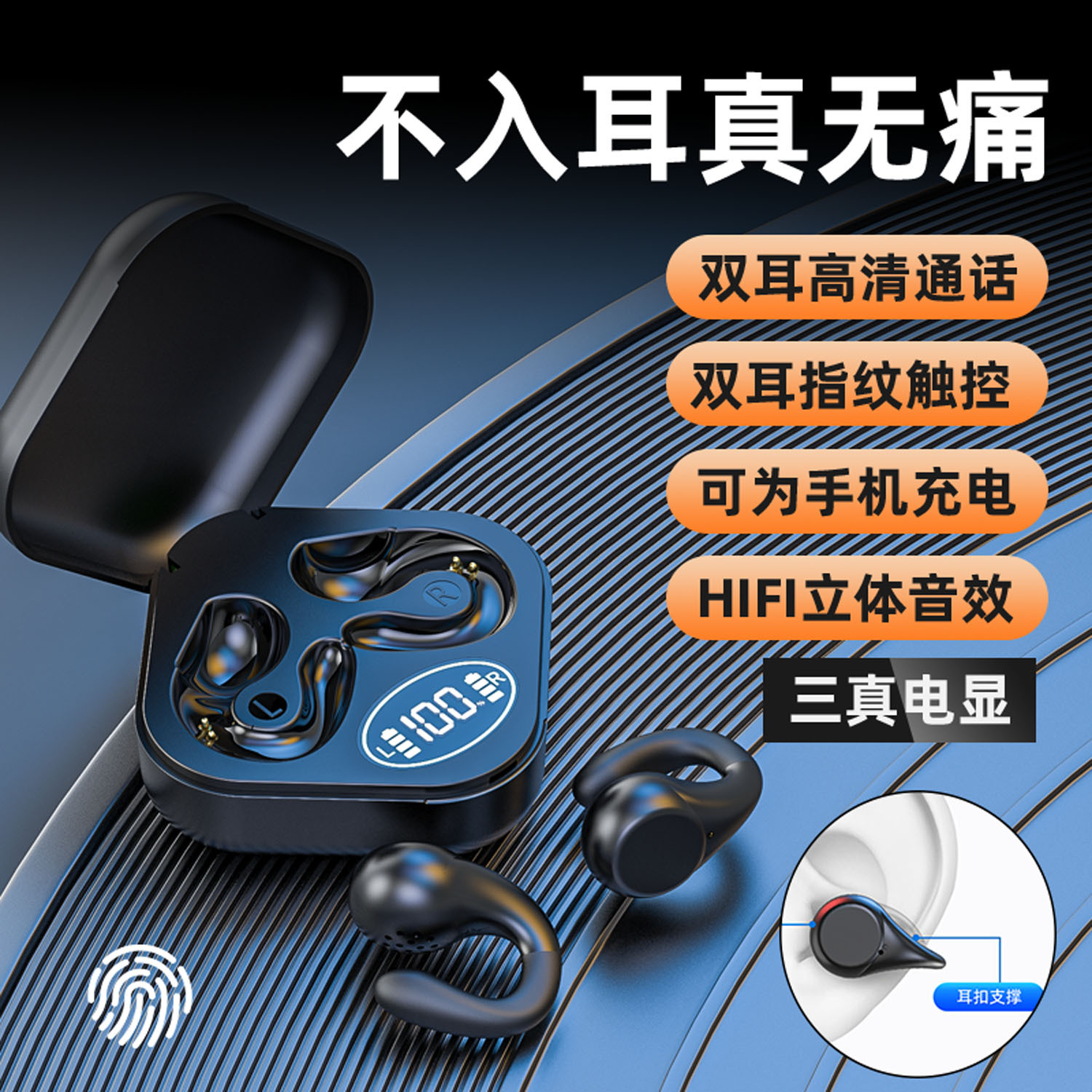 Cross-Border 2025 Earphone Bluetooth Baru Konduksi Tulang Udara Tidak Masuk Anting Jepit Panjang Olahraga Daya Panjang Kualitas Suara Tinggi Khusus Pengurangan Kebisingan